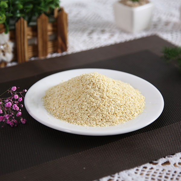 脱水蒜粒是选用优质大蒜经过精选去皮、淘洗、烤干、精选、磨粒等工序加工而成的调味品,蒜粒颜色微黄鲜亮,无黑点,水分含量低于6%,无农药残留,微生物检测不超标,不添加任何食品添加剂、防腐剂。