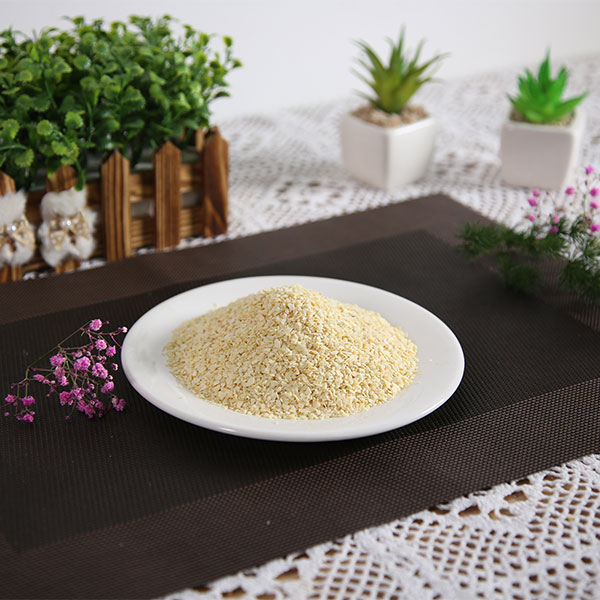 脱水蒜粒是选用优质大蒜经过精选去皮、淘洗、烤干、精选、磨粒等工序加工而成的调味品,蒜粒颜色微黄鲜亮,无黑点,水分含量低于6%,无农药残留,微生物检测不超标,不添加任何食品添加剂、防腐剂。