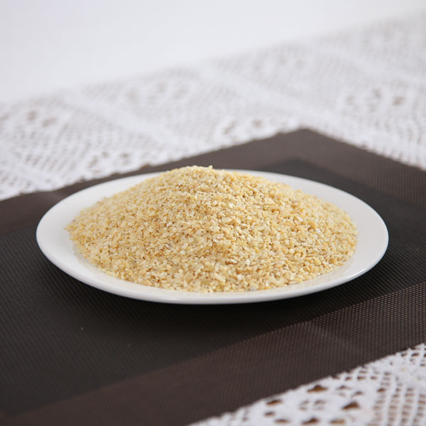 脱水蒜粒是选用优质大蒜经过精选去皮、淘洗、烤干、精选、磨粒等工序加工而成的调味品,蒜粒颜色微黄鲜亮,无黑点,水分含量低于6%,无农药残留,微生物检测不超标,不添加任何食品添加剂、防腐剂。