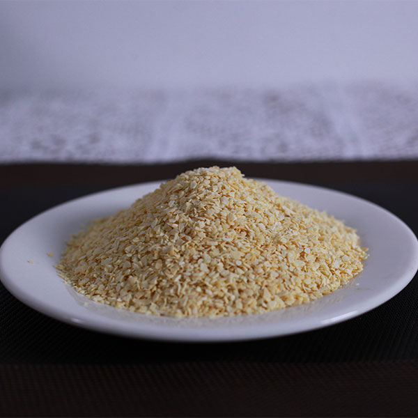 脱水蒜粒是选用优质大蒜经过精选去皮、淘洗、烤干、精选、磨粒等工序加工而成的调味品,蒜粒颜色微黄鲜亮,无黑点,水分含量低于6%,无农药残留,微生物检测不超标,不添加任何食品添加剂、防腐剂。