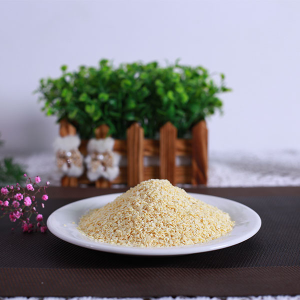 脱水蒜粒是选用优质大蒜经过精选去皮、淘洗、烤干、精选、磨粒等工序加工而成的调味品,蒜粒颜色微黄鲜亮,无黑点,水分含量低于6%,无农药残留,微生物检测不超标,不添加任何食品添加剂、防腐剂。