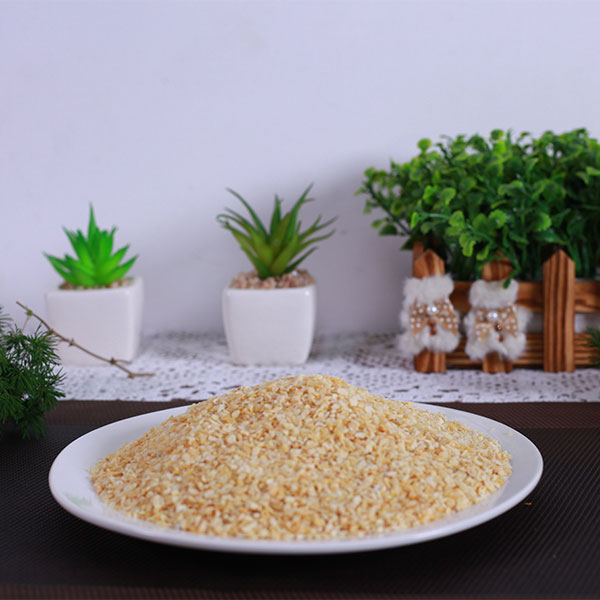 脱水蒜粒是选用优质大蒜经过精选去皮、淘洗、烤干、精选、磨粒等工序加工而成的调味品,蒜粒颜色微黄鲜亮,无黑点,水分含量低于6%,无农药残留,微生物检测不超标,不添加任何食品添加剂、防腐剂。