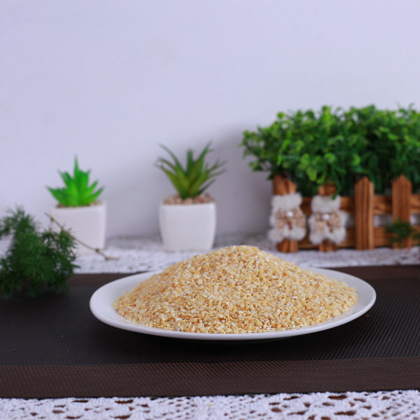 脱水蒜粒是选用优质大蒜经过精选去皮、淘洗、烤干、精选、磨粒等工序加工而成的调味品,蒜粒颜色微黄鲜亮,无黑点,水分含量低于6%,无农药残留,微生物检测不超标,不添加任何食品添加剂、防腐剂。