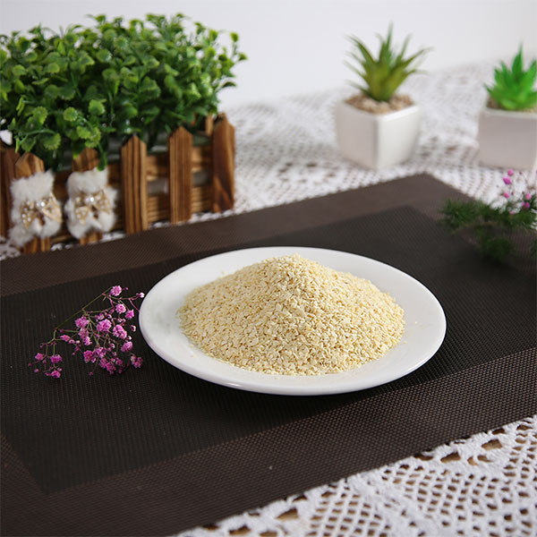 脱水蒜粒是选用优质大蒜经过精选去皮、淘洗、烤干、精选、磨粒等工序加工而成的调味品,蒜粒颜色微黄鲜亮,无黑点,水分含量低于6%,无农药残留,微生物检测不超标,不添加任何食品添加剂、防腐剂。