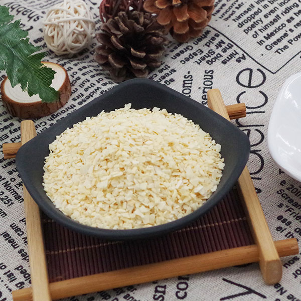 脱水蒜粒是选用优质大蒜经过精选去皮、淘洗、烤干、精选、磨粒等工序加工而成的调味品,蒜粒颜色微黄鲜亮,无黑点,水分含量低于6%,无农药残留,微生物检测不超标,不添加任何食品添加剂、防腐剂。