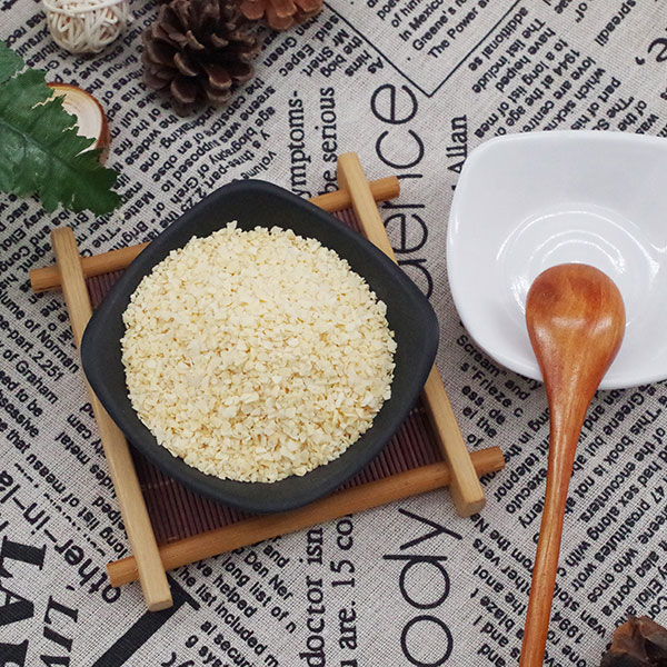 脱水蒜粒是选用优质大蒜经过精选去皮、淘洗、烤干、精选、磨粒等工序加工而成的调味品,蒜粒颜色微黄鲜亮,无黑点,水分含量低于6%,无农药残留,微生物检测不超标,不添加任何食品添加剂、防腐剂。