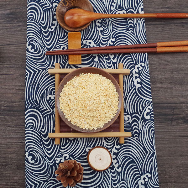 脱水蒜粒是选用优质大蒜经过精选去皮、淘洗、烤干、精选、磨粒等工序加工而成的调味品,蒜粒颜色微黄鲜亮,无黑点,水分含量低于6%,无农药残留,微生物检测不超标,不添加任何食品添加剂、防腐剂。
