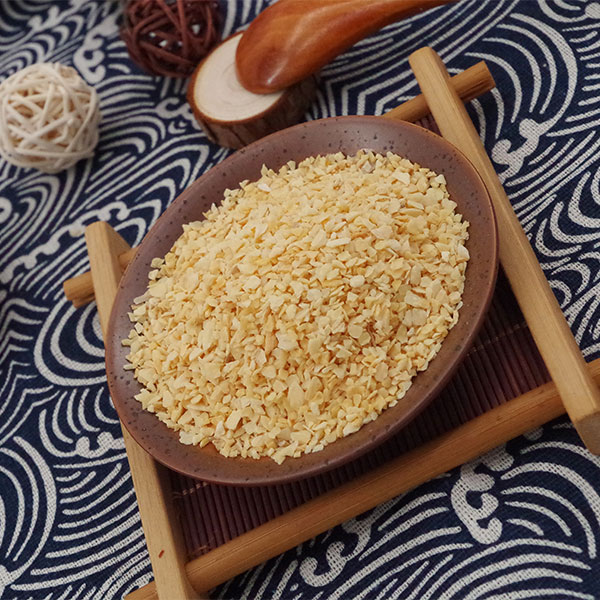 脱水蒜粒是选用优质大蒜经过精选去皮、淘洗、烤干、精选、磨粒等工序加工而成的调味品,蒜粒颜色微黄鲜亮,无黑点,水分含量低于6%,无农药残留,微生物检测不超标,不添加任何食品添加剂、防腐剂。
