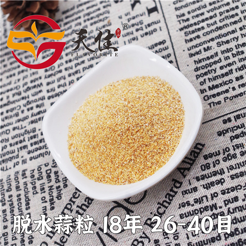 脱水蒜粒可以根据客户要求的规格进行加工。我公司生产的脱水蒜粒是选用优质大蒜经过精选去皮、淘洗、烤干、精选、磨粒、筛选分级、包装等工序加工而成,蒜粒颜色微黄鲜亮,无黑点,水分含量低于6%,低含硫、二氧化硫含量低于50PPM,无农药残留,微生物检测不超标,不添加任何食品添加剂,不添加防腐剂,产品保质期长。