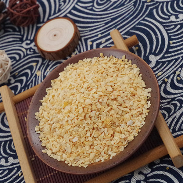 脱水蒜粒是选用优质大蒜经过精选去皮、淘洗、烤干、精选、磨粒等工序加工而成的调味品,蒜粒颜色微黄鲜亮,无黑点,水分含量低于6%,无农药残留,微生物检测不超标,不添加任何食品添加剂、防腐剂。