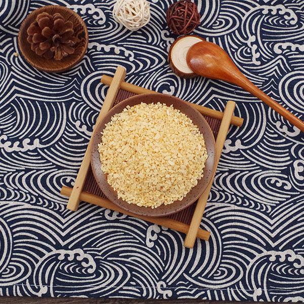 脱水蒜粒是选用优质大蒜经过精选去皮、淘洗、烤干、精选、磨粒等工序加工而成的调味品,蒜粒颜色微黄鲜亮,无黑点,水分含量低于6%,无农药残留,微生物检测不超标,不添加任何食品添加剂、防腐剂。