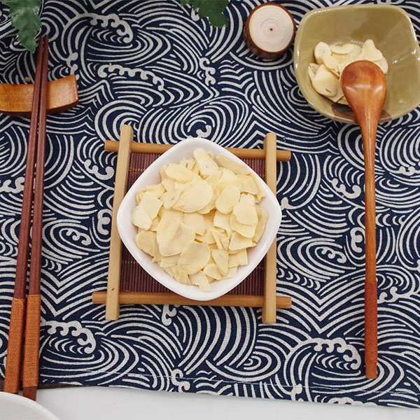 由蒜米切片烘干制成,外型整齐、片形完整、薄厚均匀、色泽微黄光亮、味道纯正、水分含量低、保质期长等特点。规格:1 mm1.5mm1.5mm3mm等。